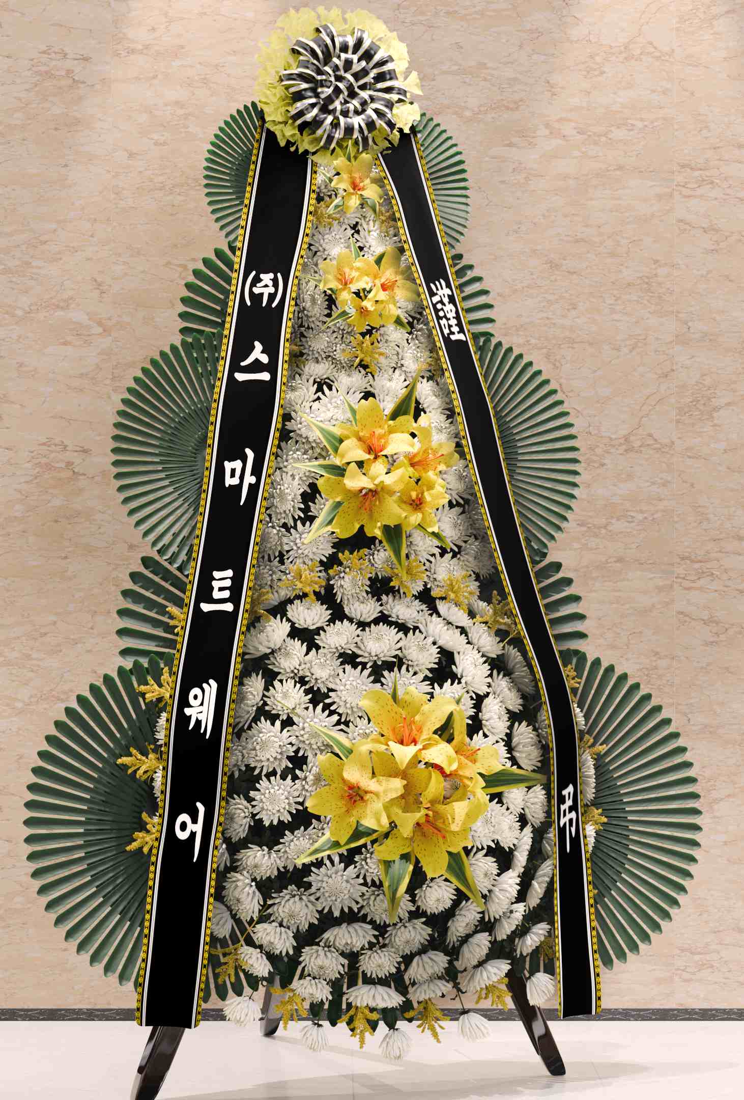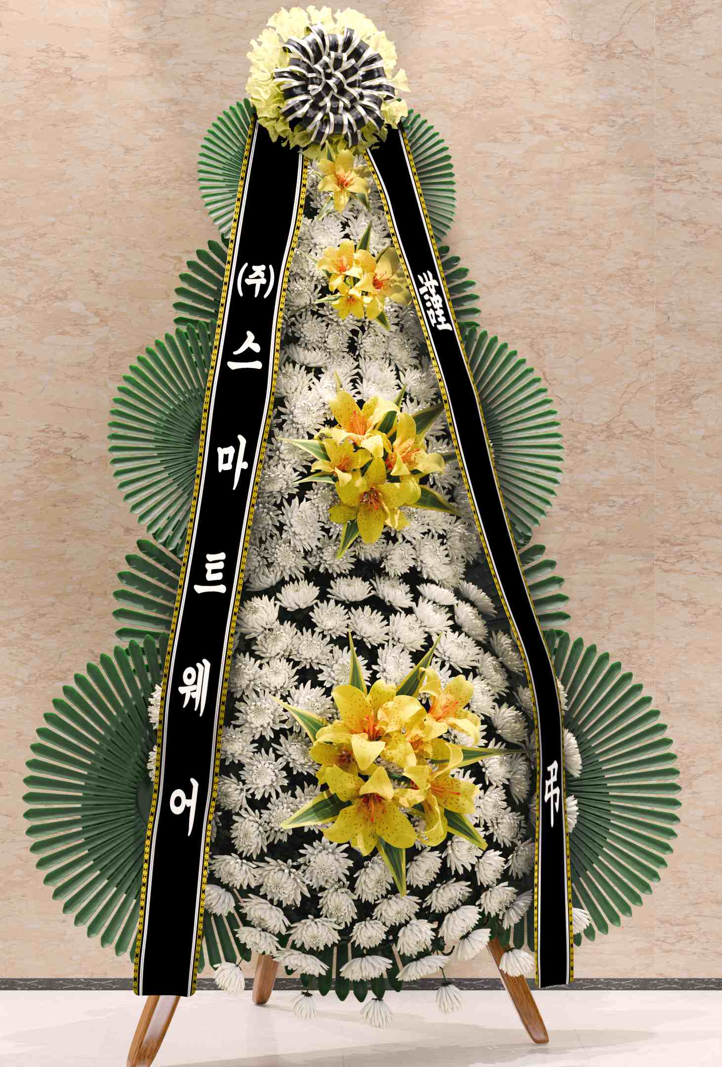 4단으로 이루어진 고급 화환이며, 천휘(天輝)는 고인의 높은 뜻과 영원한 안식을 기리며 화려하고 웅장한 느낌을 의미합니다.