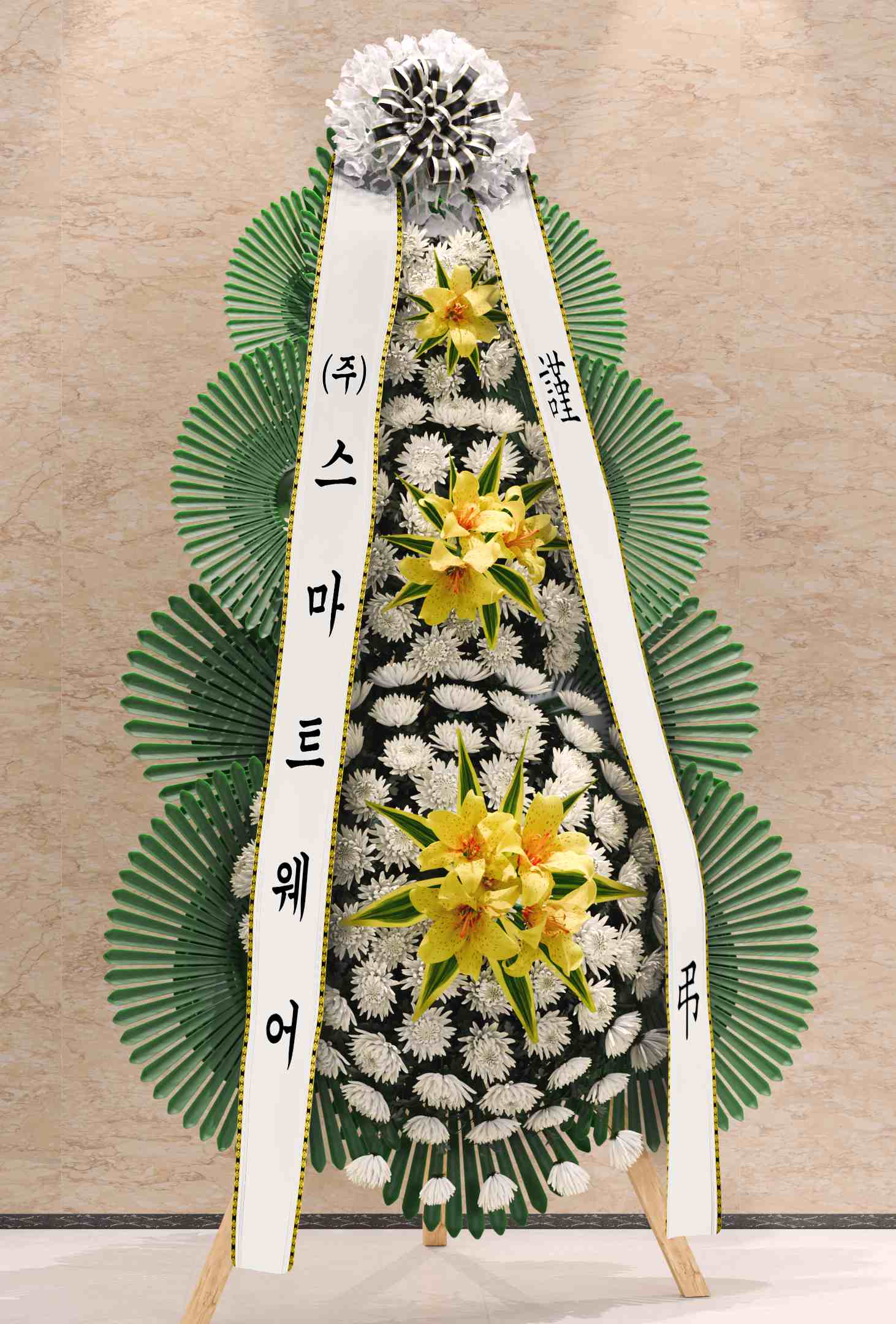 4단으로 이루어진 기본 화환이며, 청연(淸然)은 맑고 고요한 분위기를 담아 엄숙하고 조화로운 애도를 의미합니다.