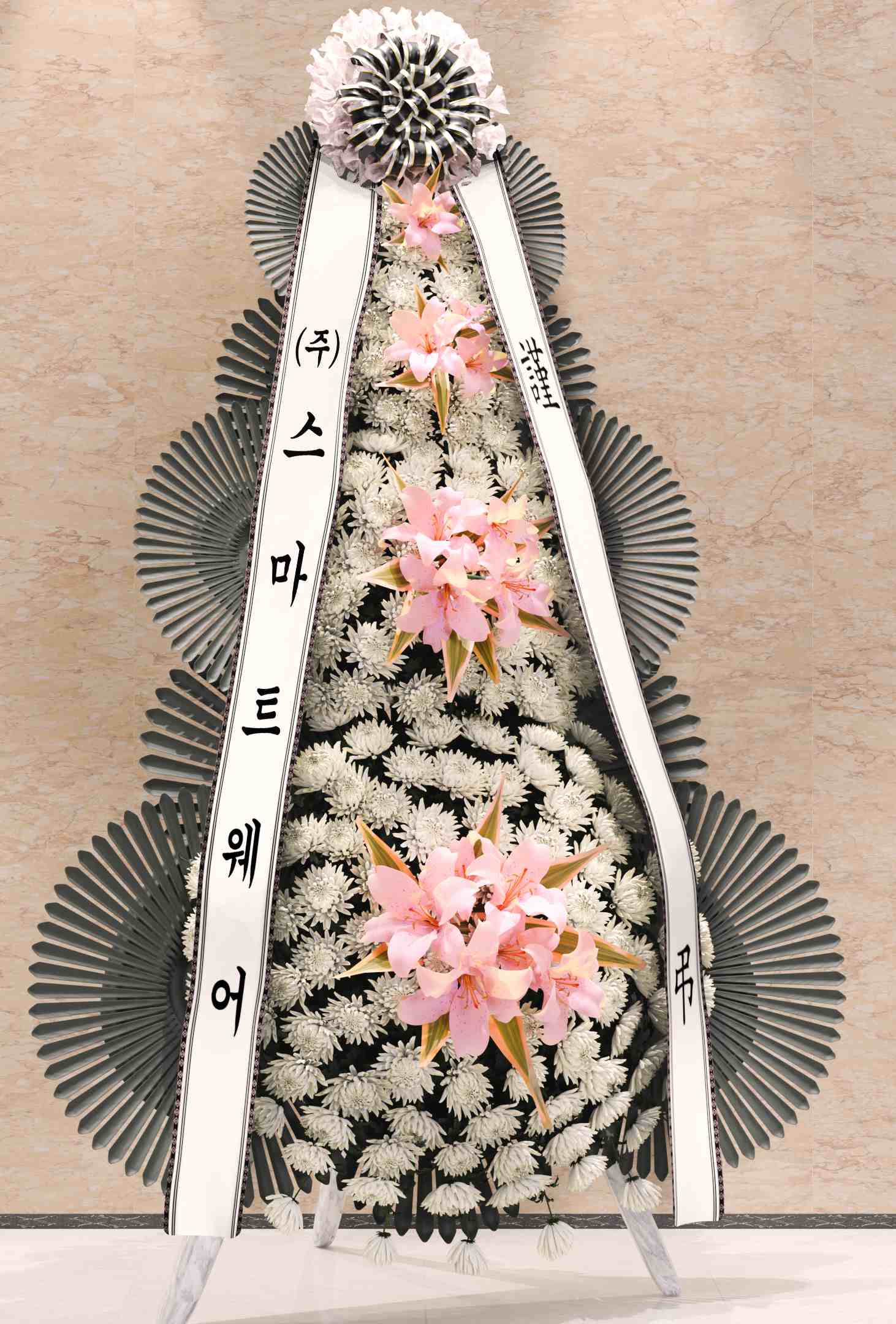 4단으로 이루어진 고급 화환이며, 청연(淸然)은 맑고 고요한 분위기를 담아 엄숙하고 조화로운 애도를 의미합니다.