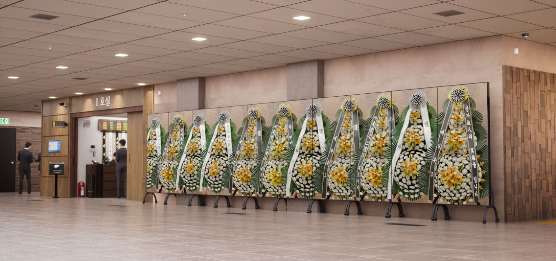 장례식장에 실제 근조화환 대신 고화질 LED 월에 디지털 화환을 보여주는 서비스 입니다